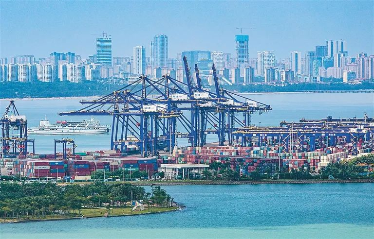 远眺繁忙的海口港集装箱码头。海南日报见习记者 王程龙 摄