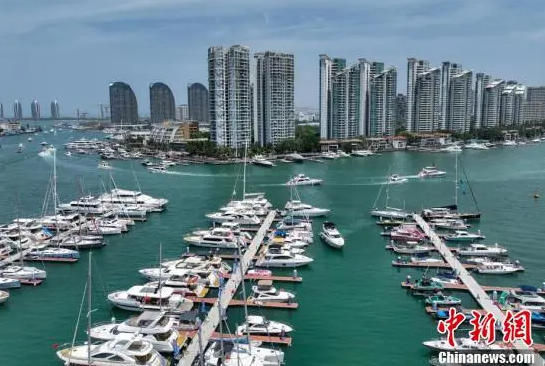 资料图:三亚国际游艇中心展出的游艇。(无人机照片)王程龙摄