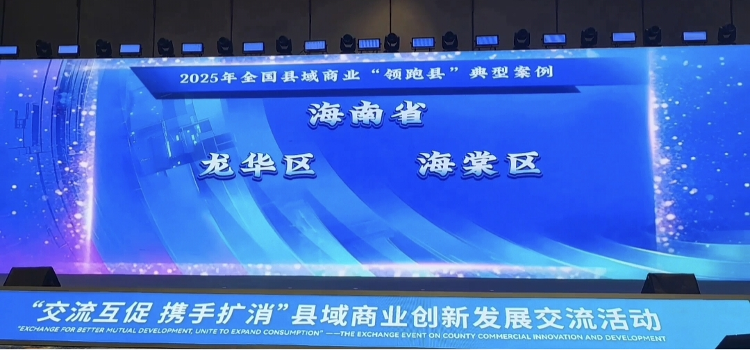 9月24日,商务部在杭州举办“交流互促携手扩消”县域商业创新发展交流活动,公布数字经济时代县域商业发展报告(2025)和全国县域商业“领跑县”典型案例。其中,海南省海口市龙华区,三亚市海棠区入选2025年全国县域商业“领跑县”典型案例。